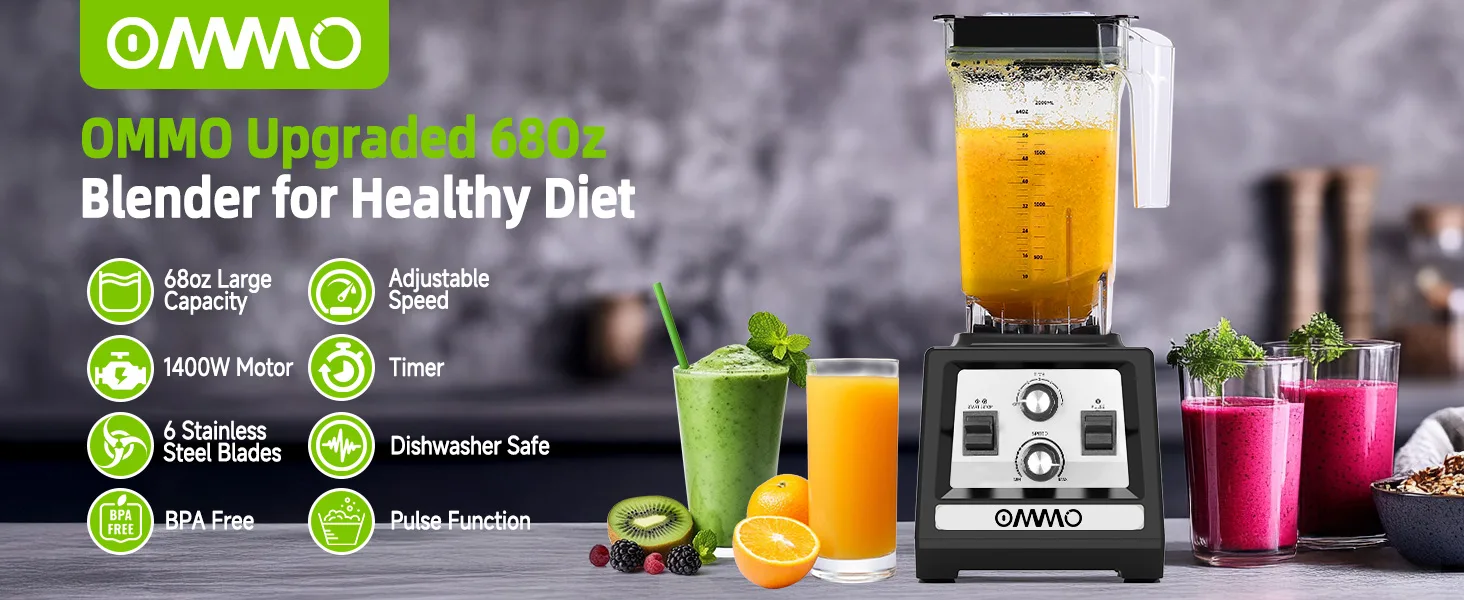 OMMO Blender for Smoothies: 1800W Peak Blenders for Kitchen