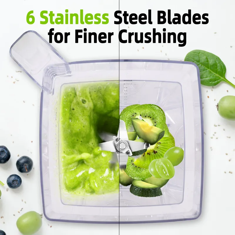 Equipped with 6 ultra-sharp stainless steel blades, this blender powers through ice, frozen fruit, and tough ingredients with ease. It delivers smooth, consistent results every time and is built for durability and high performance.