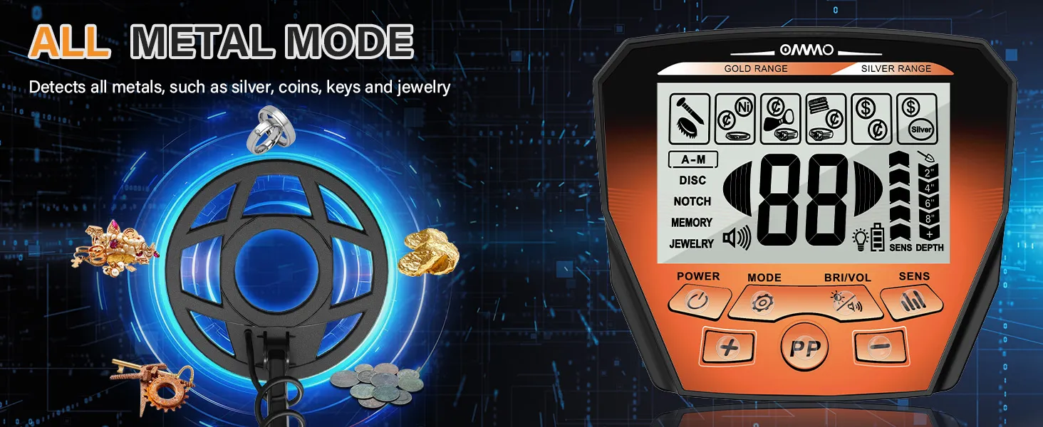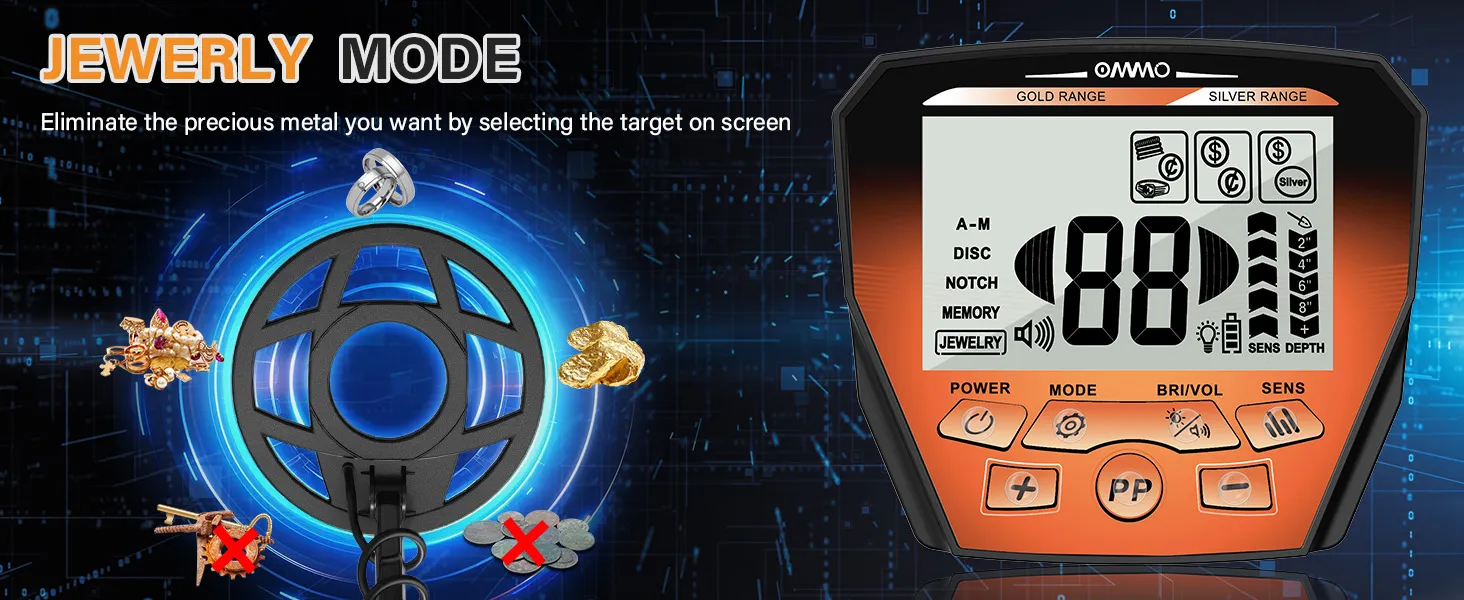 All Metal & Jewelry Modes: Detect everything from iron to gold, or narrow your search specifically to precious metals.