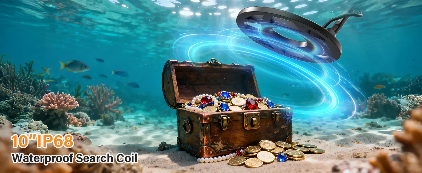 Gold Detector with IP68 10” Waterproof Coil Good value. We live near a beach and where gold “dust” comes out of the mountains and down the arroyos. Looking forward to doing some “treasure hunting” in the near future