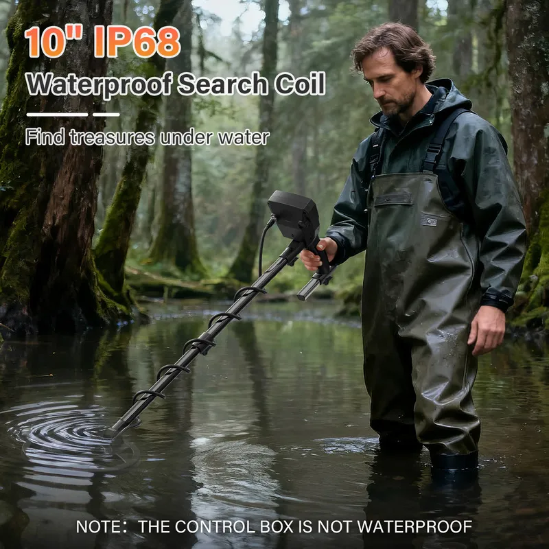 Engineered for the elements, the 10-inch IP68 waterproof search coil allows you to hunt in shallow water and wet sand where standard detectors can’t go. It boasts impressive sensitivity, detecting small coins at depths of 8 inches and larger objects up to 12 inches. While the coil is fully submersible for creek or beach exploration, the control box remains the brain of the operation and should be kept dry to ensure long-term reliability.